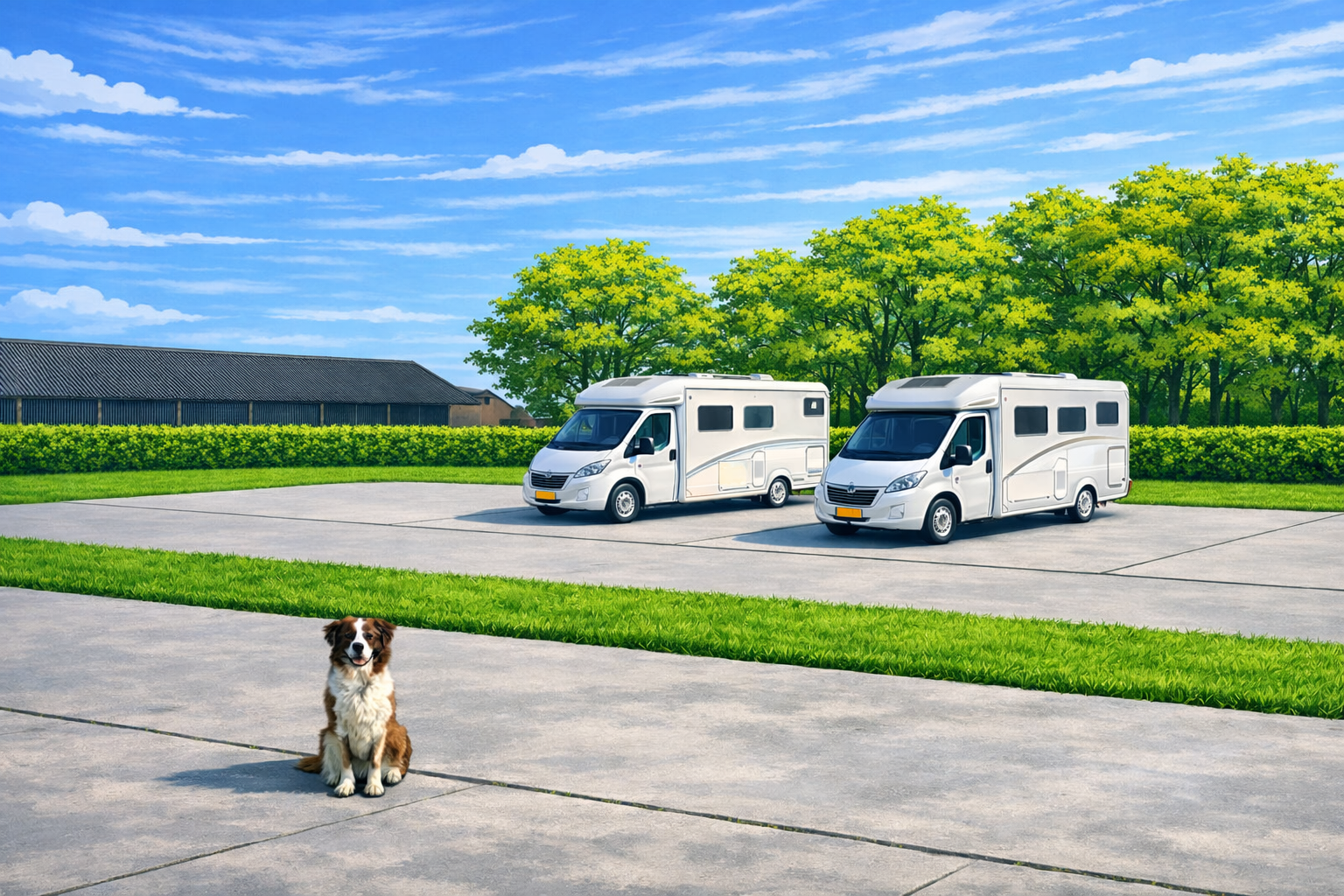 De camperplaatsen liggen op ons verharde erf, om precies te zijn op de 'kuilplaten', waar vroeger het kuilvoer voor de koeien op werd bewaard.